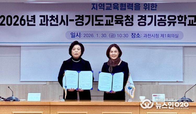 (뉴스인020 = 김성길 기자) 안양과천교육지원청은 1월 30일, 과천시청에서 과천시 (시장 신계용)와 지역의 교육자원을 활용한 학생 맞춤형 미래교육 확대와 지속 가능한 지역교육협력 체계 구축을 위해 '2026 지역교육협력을 위한 과천시–경기도 교육청 경기공유학교 업무협약'을 체결했다.