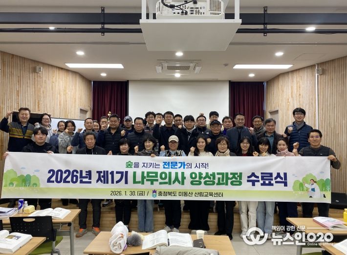 (뉴스인020 = 김성길 기자) 충청북도산림환경연구소는 지난 1월 5일부터 30일까지 미동산산림교육센터에서 운영한 ‘2026년 제1기 나무의사 양성과정’을 마치고, 교육과정을 이수한 교육생 32명을 배출했다.