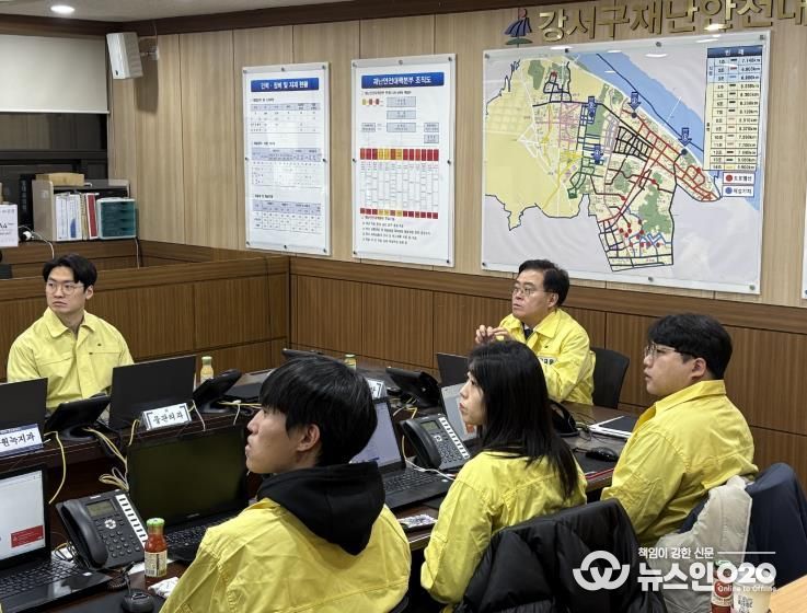 (뉴스인020 = 김성길 기자) 진교훈 서울 강서구청장이 1일 밤부터 2일 새벽 사이에 서울 전역에 많은 눈이 내릴 것이 예보됨에 따라 구 제설대책본부를 찾아 제설대응 체계를 점검했다.
