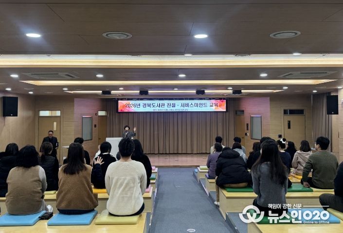 (뉴스인020 = 김성길 기자) 경북도서관은 도서관 직원의 서비스마인드 함양과 민원응대 역량 강화를 위해, 2월 2일(월) 오후 2시부터 3시 30분까지 경북도서관 2층 강당에서 ‘직원 친절·서비스마인드 교육’을 실시했다.
