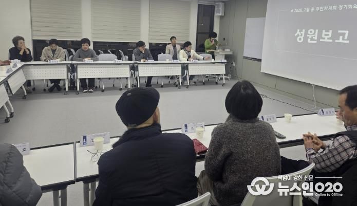 (뉴스인020 = 김성길 기자) 수원시 영통구 망포1동은 지난 2일 망포1동 행정복지센터 중회의실에서 주민자치회(회장 김태영) 2월 정기회의를 개최했다.
