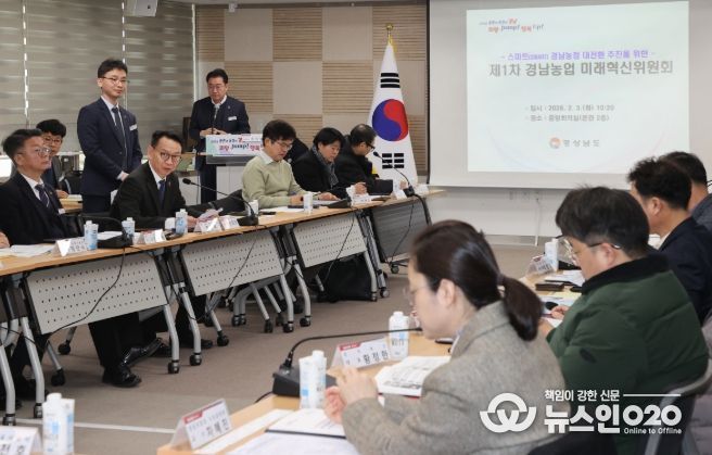 (뉴스인020 = 김성길 기자) 경상남도는 3일 도청 중앙회의실에서 경남농업 미래혁신위원회 제1차 전체 회의를 열고, 2026년 농정국 주요 업무 추진 방향과 국비 신규사업 발굴 전략을 공유했다고 밝혔다.