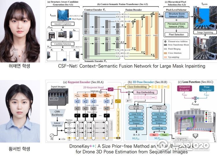 허채연 학생(석사과정생)은 대형 마스크 인페인팅 연구로 IEEE WACV 2026에, 황서빈 학생(석·박통합과정생)은 드론 3D 자세 추정 연구로 IEEE ICRA 2026에 각각 게재 승인을 받았다.