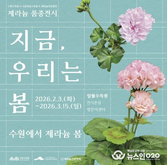 (뉴스인020 = 김성길 기자) 수원특례시는 2월 3일부터 3월 15일까지 일월수목원에서 제라늄을 주제로 한 기획전시 ‘우린, 지금부터 봄(수원에서 제라늄 봄)’을 연다.