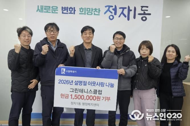 (뉴스인020 = 김성길 기자) 수원시 장안구 정자1동은 지난 3일, 그린테니스클럽이 설 명절을 맞아 관내 취약계층을 돕기 위한 기부금 150만원을 전달했다고 밝혔다.