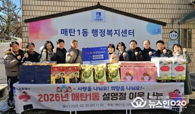 (뉴스인020 = 김성길 기자) 수원특례시 영통구 매탄1동은 지난 3일 설 명절을 맞이해 관내 저소득층 300여 세대에 후원물품을 전달하는 이웃돕기 나눔 전달식을 개최했다.