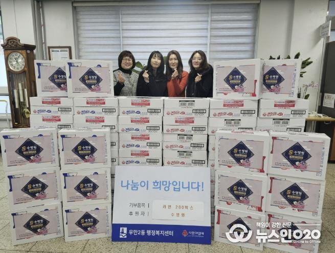 (뉴스인020 = 김성길 기자) 지난 2월 3일, 수병원에서 설을 앞두고 지역사회에 정을 나누고자 따뜻한 마음이 담긴 라면 200박스를 수원시 팔달구 우만2동에 전달했다.