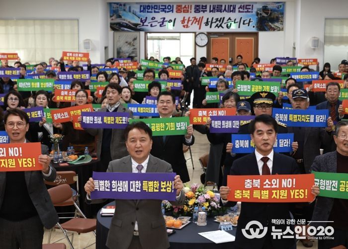 보은군청 대회의실에서 열린 도정 보고회에는 보은군민 200여 명이 참석해 충청북특별자치도법 제정 피켓 퍼포먼스를 시작으로, 도민 공감 토크콘서트가 진행됐다.