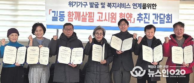 (뉴스인020 = 김성길 기자) 서울 강동구 길동주민센터는 지난 1월 23일, 관내 고시원 10개소와 ‘길동 함께살핌 고시원 협약’을 체결하고, 고시원에 거주하는 도움이 필요한 1인 가구를 조기에 발굴해 지원하는 체계를 마련했다고 5일 밝혔다. 길동주민센터는 이번 협약을 통해 민관 협력을 강화하며 복지 사각지대 해소에 적극 나서고 있다.