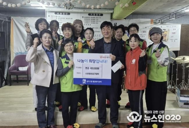 수원품바장구대학은 지난 4일, 2026년 설 명절을 맞아 지역 내 소외된 이웃들을 위해 40만원의 성금을 정자1동 행정복지센터에 기부했다.