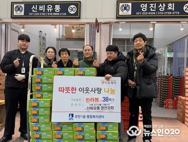 (뉴스인020 = 김성길 기자) 수원 농수산물도매시장 내 신비유통‧영진상회에서 설 명절을 앞두고 우만동 이웃들에게 따뜻한 정을 전했다고 밝혔다.