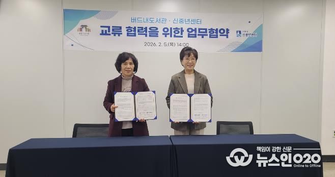 두 기관은 5일 버드내도서관에서 ‘신중년 맞춤형 라이프 솔루션 제공을 위한 업무협약’을 체결하고, 협력을 약속했다.