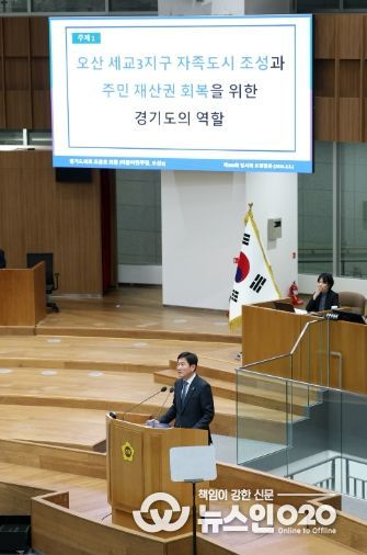 (뉴스인020 = 김성길 기자) 경기도의회 문화체육관광위원회 조용호 의원(더불어민주당, 오산2)은 5일 열린 경기도의회 제388회 임시회 제3차 본회의 대집행부 질문에서, 세교3지구 개발과 북오산IC 교통 문제를 비롯해 돌봄 정책, 경기도종합대육대회, 각종 공모사업 운영 전반에 대한 경기도의 책임 있는 역할을 촉구했다.