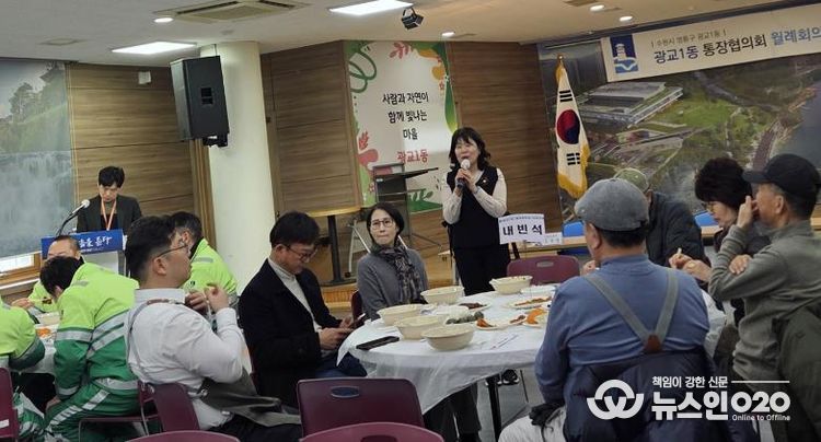 송숙영 광교1동장은 “항상 현장에서 든든한 지원자 역할을 해주시는 통장님들과 환경관리원, 직원 여러분께 감사드린다”며 “오늘과 같은 나눔 행사가 지역공동체를 더욱 단단하게 만드는 계기가 되길 바란다”고 전했다.