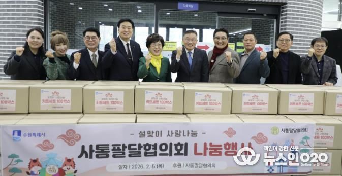 (뉴스인020 = 김성길 기자) 사통팔달협의회는 지난 5일, 민족 대명절인 설을 앞두고 관내 어려운 이웃을 위한 ‘설맞이 사랑나눔 키트’ 100박스를 수원시 팔달구에 전달했다고 밝혔다.
