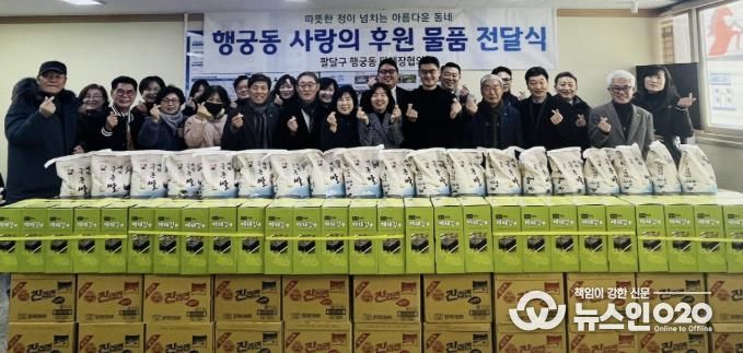 (뉴스인020 = 김성길 기자) 수원시 팔달구 행궁동은 지난 6일 설 명절을 맞아 ‘행궁동 사랑의 후원 물품 전달식’을 개최했다. 이번 전달식에는 설 명절을 앞두고 행궁동 취약계층을 위해 후원 물품을 기부한 행궁동 주민자치회를 비롯한 단체장들과 후원자들이 참석해 이웃 나눔의 의미를 함께 했다.