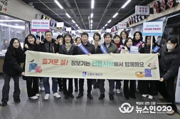 (뉴스인020 = 김성길 기자) 수원시 권선구는 지난 9일 설 명절을 맞아 권선종합시장을 찾아 지역경제를 살리기 위한 ‘전통시장 장보기 캠페인’을 실시했다.