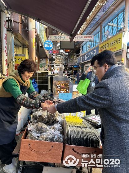 (뉴스인020 = 김성길 기자) 충북도 재난안전실은 지난 9일(월) 설 명절을 앞두고 도, 영동군 공무원과 영동군 안전보안관, 자율방재단 등 40명과 함께 영동군 영동전통시장에서 장보기 행사와 안전한 설 명절 보내기 안전캠페인 등을 실시했다.