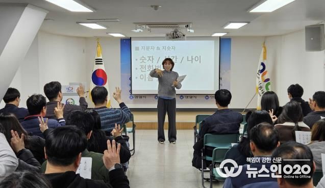 (뉴스인020 = 김성길 기자) 안양도시공사는 지난 10일 공사 대회의실에서 장애인 고객과의 원활한 소통과 포용적 공공서비스 강화를 위한 임직원 대상 ‘기초 수어 교육’을 실시했다고 11일 밝혔다.
