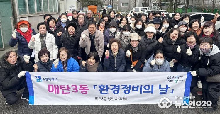 (뉴스인020 = 김성길 기자) 영통구 매탄3동은 지난 10일 설 명절을 앞두고 관내 중심 상가와 주택가 일대를 중심으로 설맞이 대청소를 실시했다.