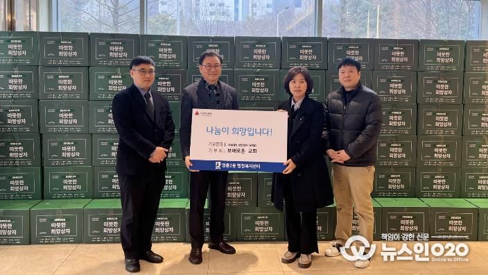 (뉴스인020 = 김성길 기자) 수원시 영통구 영통2동은 지난 10일 보배로운 교회가 설 명절을 맞이해 주위의 어려운 이웃들에게 전달해달라며 기아대책 희망상자(생활필수품 20여 종) 50박스를 영통2동 행정복지센터에 기탁했다고 밝혔다.