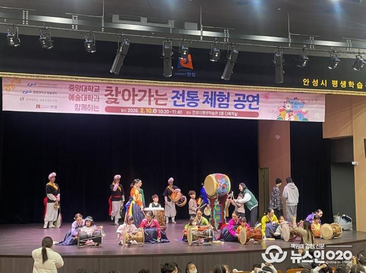 (뉴스인020 = 김성길 기자) 안성시는 2월 10일 오전 10시 안성시평생학습관 2층 다목적실에서 열린 ‘찾아가는 전통 체험 공연 시즌 2 – 춤과 연희가 함께하는 무대’가 150여 명의 시민이 함께한 가운데 큰 호응 속에 성황리에 마무리됐다고 밝혔다.