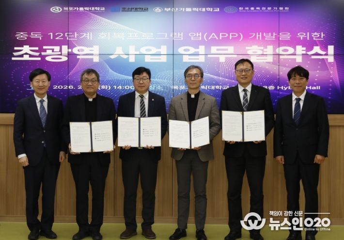 목포가톨릭대학교는 지난 10일 교내 꿈토피아에서 조선대학교, 부산가톨릭대학교, 한국중독전문가협회와 함께 ‘중독 12단계 회복프로그램 앱 개발을 위한 초광역 사업 업무협약’을 했다.