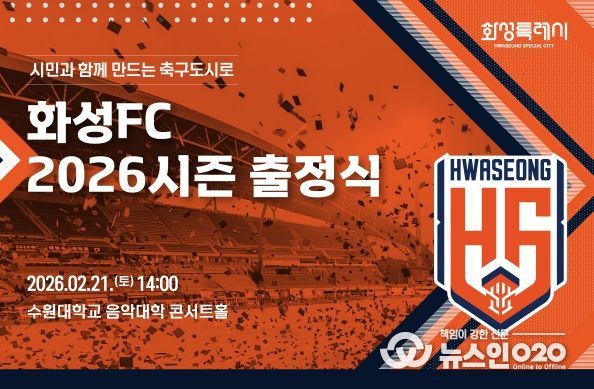 (뉴스인020 = 김성길 기자) 화성FC가 오는 2월 21일 오후 2시, 수원대학교 음악대학 콘서트홀에서 ‘2026 화성FC 출정식’을 개최하고 2026시즌의 본격적인 출발을 알린다.