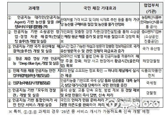 (뉴스인020 = 김나현 기자) 과학기술정보통신부는 '인공지능 민생 10대 과제(프로젝트)'를 본격 추진하기 위해, 과제(프로젝트) 중 8개 과제의 사업자 선정을 위한 공모를 2월 11일부터 개시한다고 밝혔다.
