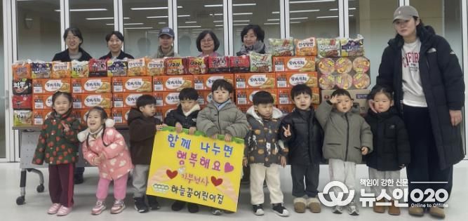 (뉴스인020 = 김성길 기자) 하늘꿈어린이집은 지난 11일, 지역 내 어려운 이웃을 돕기 위해 라면 30박스를 매산동 행정복지센터에 기부했다.