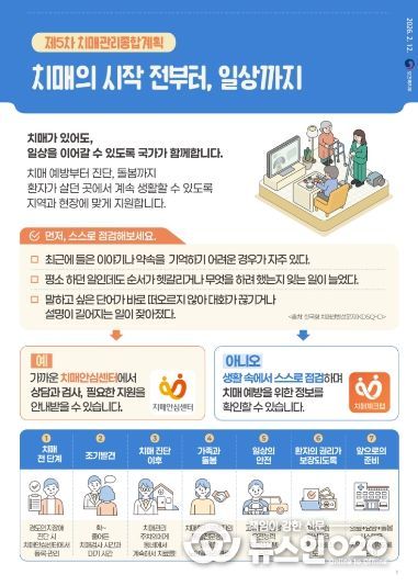 (뉴스인020 = 김나현 기자) 보건복지부는 2월 12일 국가치매관리위원회(위원장: 이스란 제1차관) 심의를 거쳐 「제5차 치매관리종합계획(2026~2030)」을 확정·발표했다.