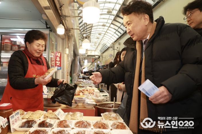 (뉴스인020 = 김성길 기자) 김영환 도지사는 2월 12일 설 명절을 앞두고 청주 사창시장을 방문해 전통시장 장보기에 참여하며, 지역경제 현장 소통 행보에 나섰다.