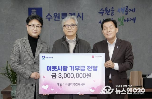 (뉴스인020 = 김성길 기자) 수원지역건축사회가 “취약계층 이웃을 위해 사용해 달라”며 수원시에 300만 원을 기부했다.