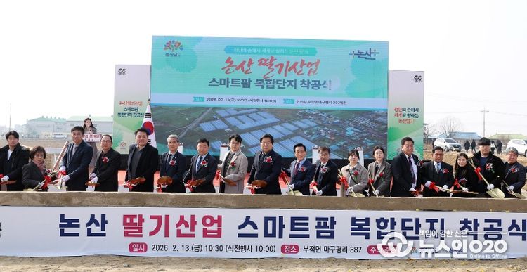 도는 13일 논산시 부적면 마구평리 일원에서 전형식 정무부지사와 청년농업인 등 300여 명이 참석한 가운데 ‘논산 딸기산업 스마트팜 복합단지(이하 논산 딸기 복합단지)’ 착공식을 개최했다.