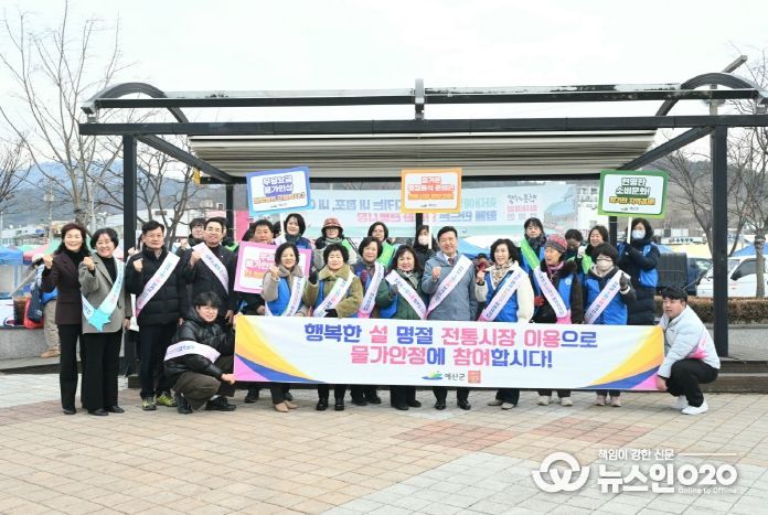 (뉴스인020 = 김성길 기자) 예산군은 설 명절을 맞아 관내 전통시장 정기 오일장 일정에 맞춰 담당부서 직원과 소비자교육중앙회 예산군지회 회원 등이 참여한 가운데 전통시장 장보기와 물가안정 캠페인을 펼쳤다.