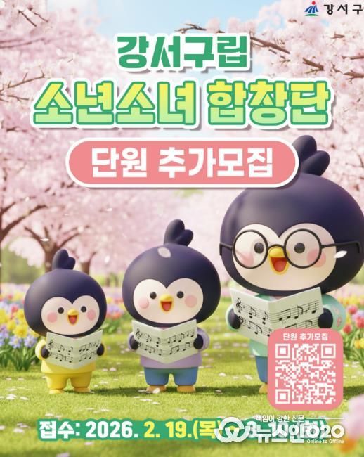 (뉴스인020 = 김성길 기자) 서울 강서구는 3월 10일(화)까지 ‘강서구립소년소녀합창단’과 함께할 단원 17명을 모집한다고 밝혔다.