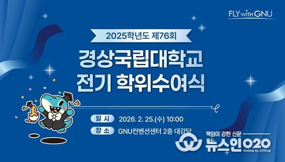 (뉴스인020 = 김성길 기자) 경상국립대학교는 2월 25일 오전 10시 가좌캠퍼스 GNU컨벤션센터에서 ‘2025학년도 전기(제76회) 학위수여식’을 열고 박사·석사·학사 학위 취득자들의 새로운 출발을 축하한다.