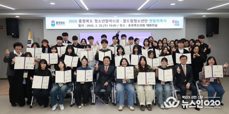 (뉴스인020 = 김성길 기자) 2026년 충청북도 청소년참여위원회 및 꿈드림 청소년단 위촉식이 2월 25일 충청북도의회 대회의실에서 개최됐다.