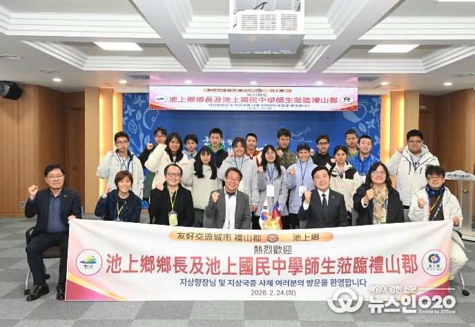 (뉴스인020 = 김성길 기자) 예산군은 우호교류도시인 대만 타이둥현 지상향 방문단이 2월 24일부터 25일까지 1박 2일 일정으로 예산군을 방문해 청소년 교류 및 문화체험 활동을 진행했다고 밝혔다.