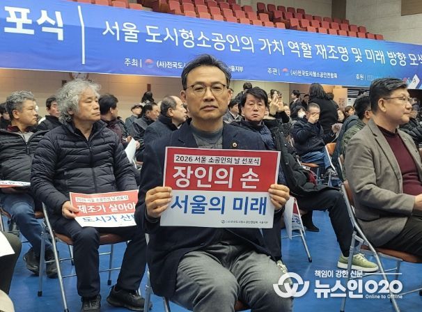 (뉴스인020 = 김성길 기자) 서울시의회 기획경제위원회 이상훈 의원(더불어민주당, 강북2)은 25일 중구 구민회관 대강당에서 열린 ‘2026 서울 도시형 소공인의 날 선포식’에 참석하여 서울의 뿌리 산업으로 지정된 5대 도심 제조업(봉제·기계·금속·수제화·주얼리)의 현안을 공유하고 미래 비전 수립을 위한 방안 수립에 나섰다.