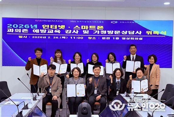 (뉴스인020 = 김성길 기자) 강원특별자치도는 2월 26일 오전 11시 도청 본관 1층 영상회의실에서 2026년 인터넷·스마트폰 과의존 예방·해소 사업 추진을 위한 예방교육 강사 및 가정방문상담사 위촉식을 개최했다.