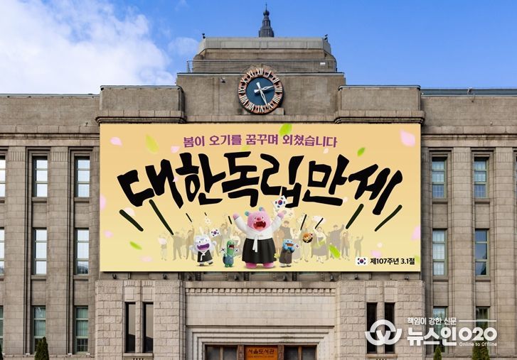 (뉴스인020 = 김성길 기자) 서울시는 107주년 3‧1절을 앞둔 2월 27일, “봄이 오기를 꿈꾸며 외쳤습니다. 대한독립만세”라는 문구로 서울꿈새김판을 새롭게 단장하여 시민에게 공개했다.