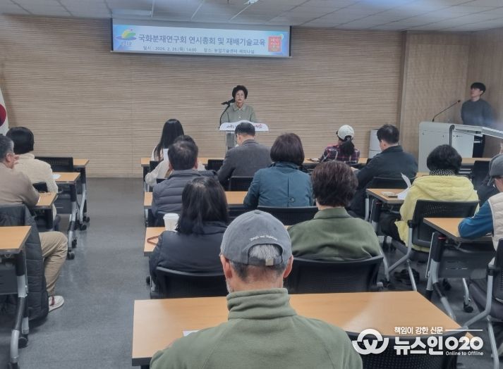 (뉴스인020 = 김성길 기자) 예산군농업기술센터는 지난 26일 센터 2층 세미나실에서 국화분재연구회 연시총회와 재배기술교육을 실시했다.