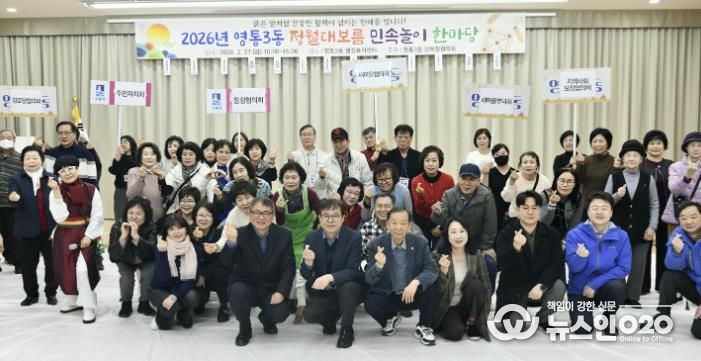 (뉴스인020 = 김성길 기자) 영통구 영통 3동은 지난 27일 영통3동 단체장협의회가 영통3동 행정복지센터에서 “2026년 영통3동 정월대보름맞이 민속놀이 한마당”을 성황리에 개최했다고 밝혔다.