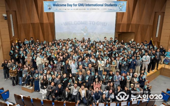 (뉴스인020 = 김성길 기자) 경상국립대학교는 2026학년도 1학기에 외국인 유학생 244명이 입학했다고 밝혔다. 경상국립대학교 국제처는 2월 27일 오후 GNU국제관 파이어니어 오디토리엄에서 ‘2026학년도 1학기 외국인 유학생 신입생 오리엔테이션’을 개최했다. 행사에는 권진회 총장과 오재신 국제처장을 비롯해 외국인 유학생, 유학생 도우미(GNU Buddy), 교직원 등 320여 명이 참석했다.