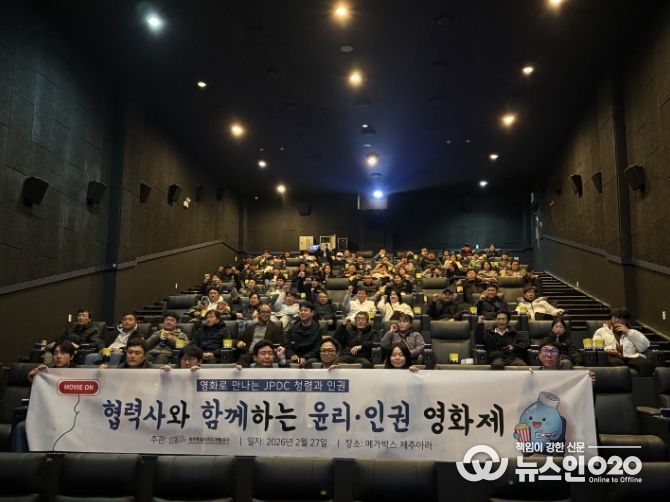 (뉴스인020 = 김성길 기자) 제주삼다수를 생산·유통하는 제주특별자치도개발공사(사장 백경훈)는 지난 27일 메가박스 제주아라점에서 운송 협력사와 함께하는 ‘윤리·인권 영화제’를 개최했다.