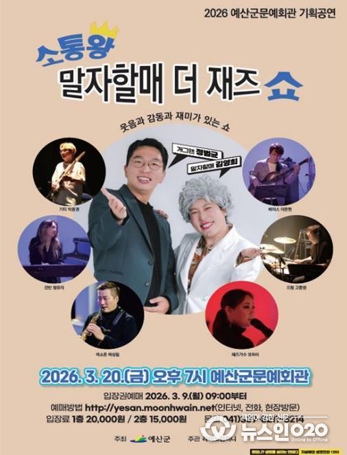 (뉴스인020 = 김성길 기자) 예산군은 오는 3월 20일 저녁 7시 문예회관 공연장에서 ‘소통왕 말자할매 더 재즈 쇼’ 토크 콘서트를 개최한다고 밝혔다.