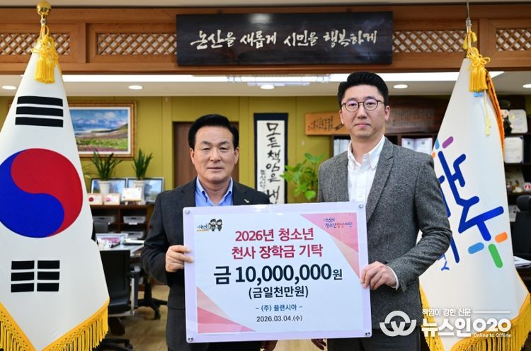 (뉴스인020 = 김성길 기자) 논산시청소년청년재단은 지난 4일 ‘㈜플랜시아’가 지역 청소년을 위한 천사 장학금 1천만 원을 기탁했다고 전했다.