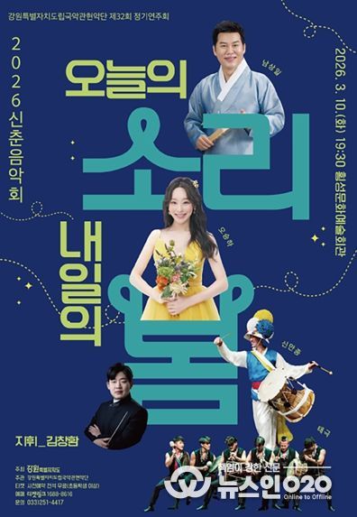 (뉴스인020 = 김성길 기자) 강원특별자치도립국악관현악단이 2026년 첫 정기공연으로 신춘연주회 〈오늘의 소리, 내일의 봄〉을 선보인다.