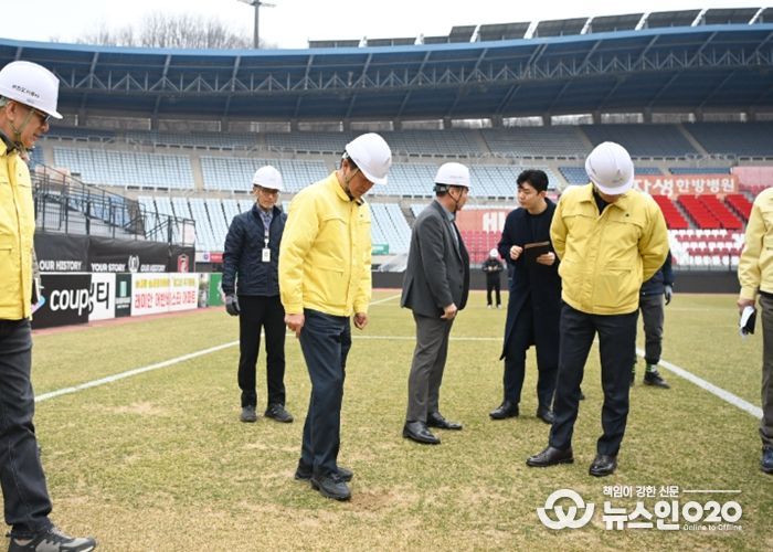 (뉴스인020 = 김성길 기자) 부천시가 오는 7일 열리는 부천FC1995 사상 첫 K리그1 홈 개막전을 하루 앞두고 부천종합운동장 모든 구역에 대한 안전 점검에 나섰다. 승격팀 부천FC1995가 개막전부터 ‘디펜딩 챔피언’ 전북 현대를 역전승으로 꺾는 이변을 연출하며 축구 열기가 높아진 만큼, 시민들이 안전하게 경기를 즐기고 선수들은 최상의 기량을 발휘하는 환경을 마련하겠다는 취지다.